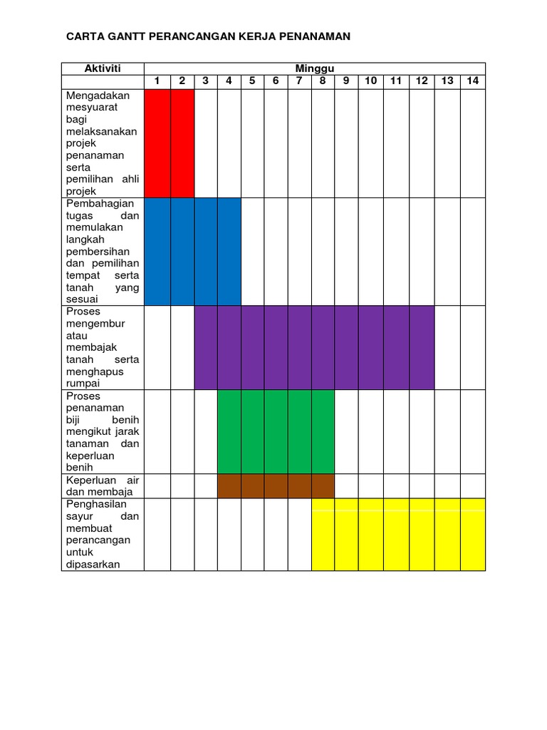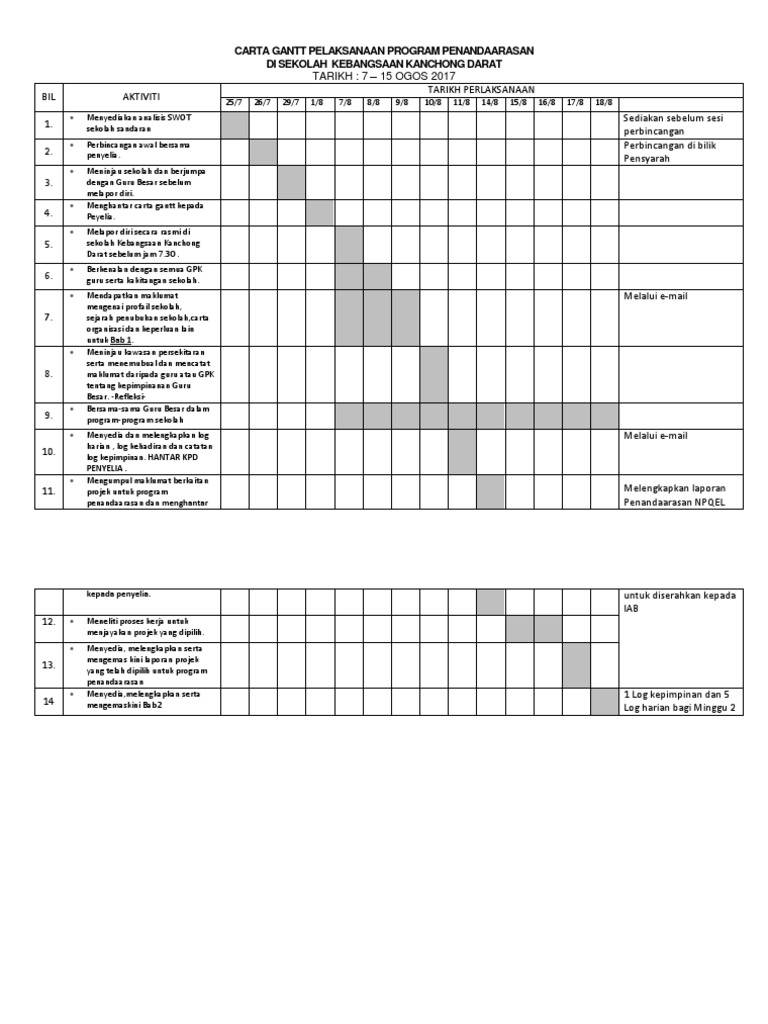 Contoh Carta Gantt Aktiviti Mingguan Pdf