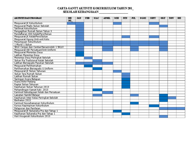 Contoh Carta Gantt Aktiviti Kokurikulum Tahun Pdf