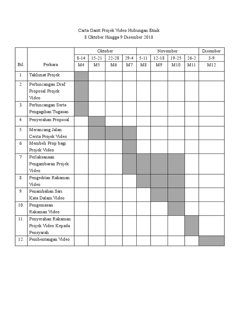 Carta Gantt Projek Video Hubungan Etnik Pdf