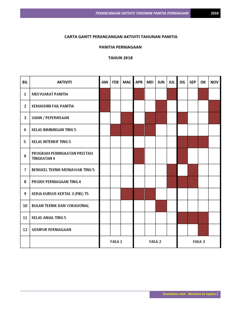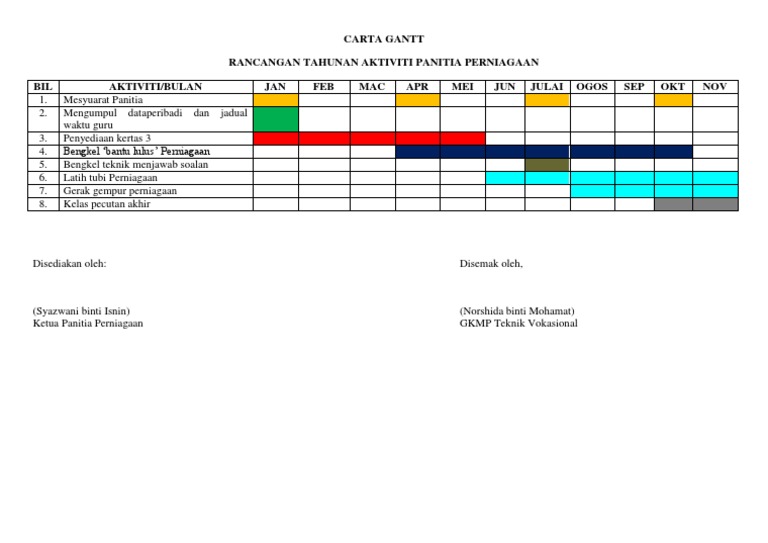 Carta Gantt Perancangan Aktiviti Tahunan Panitia Pdf